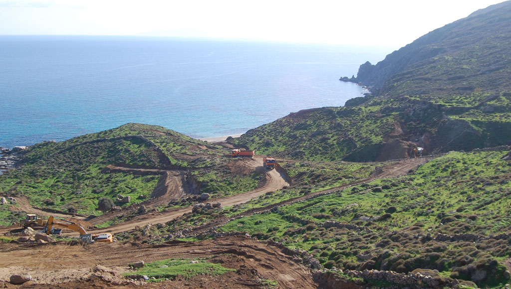 Η Οικοδομική Μυκόνου με τον ιδιόκτητο στόλο φορτηγών – οχημάτων και μηχανημάτων έργου αναλαμβάνει πάσης φύσεως Χωματουργικές εργασίες, σύμφωνα με την εκάστοτε ανάγκη του πελάτη.